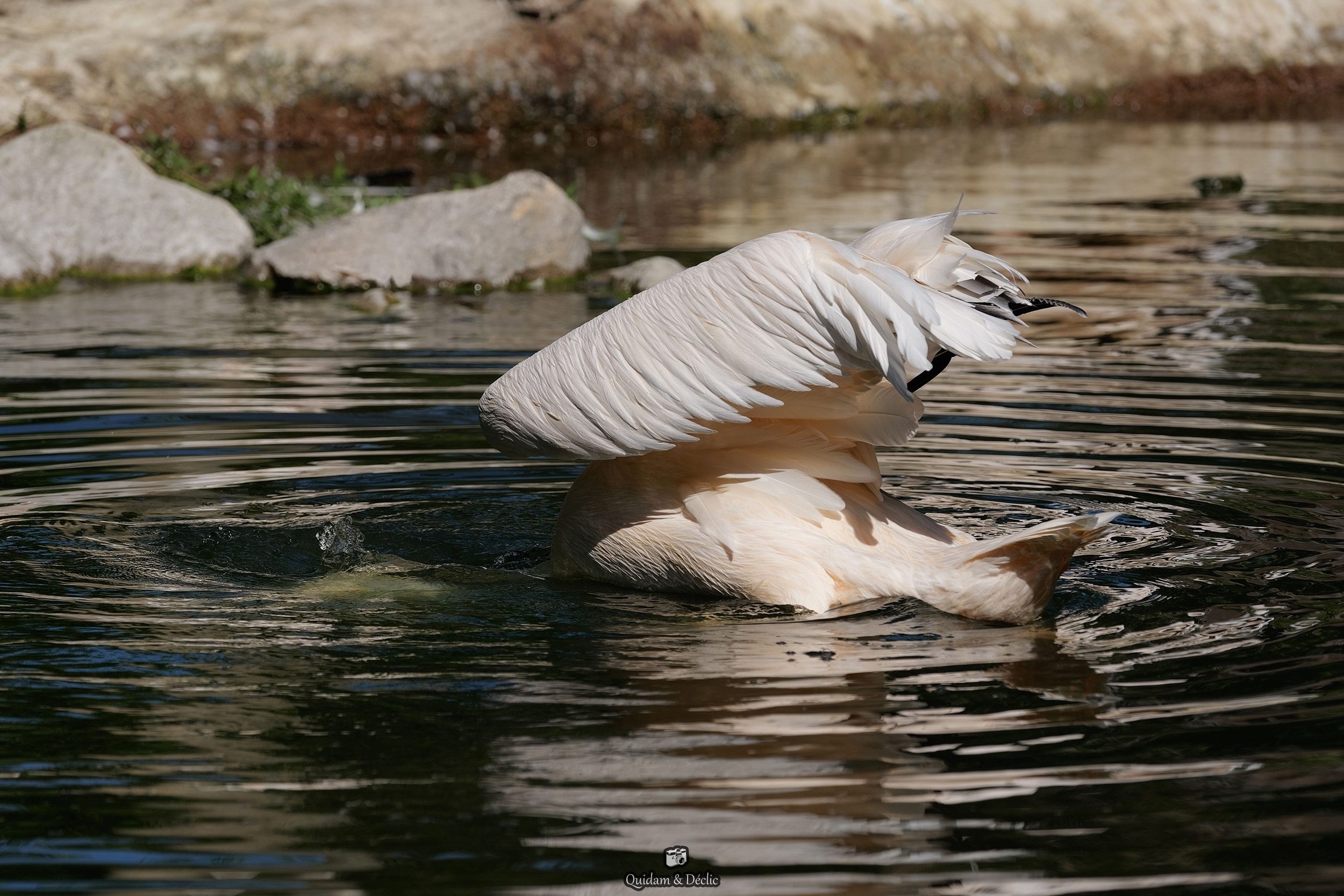 Mais pas n’importe lequel, s’agissant de celui d’un pélican blanc (Pelecanus onocrotalus), lequel peut atteindre une longueur de 45 centimètres chez le mâle.