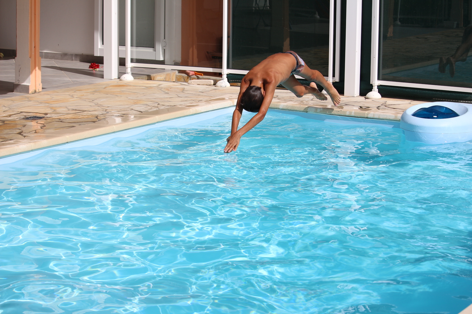 Posté(e) 11 août 20178 a il y a une heure, Nikita a dit : C'est une bonne photo en ce qui me concerne. On voit bien les pieds décollés du sol et les mains qui pénètrent dans l'eau de la piscine. Un recadrage peut-être un peu trop serré. J'aurais laissé un peu plus d'espace devant ses mains si possible. Tout comme elle, mais faut noter que l'instant est vraiment bien choisi