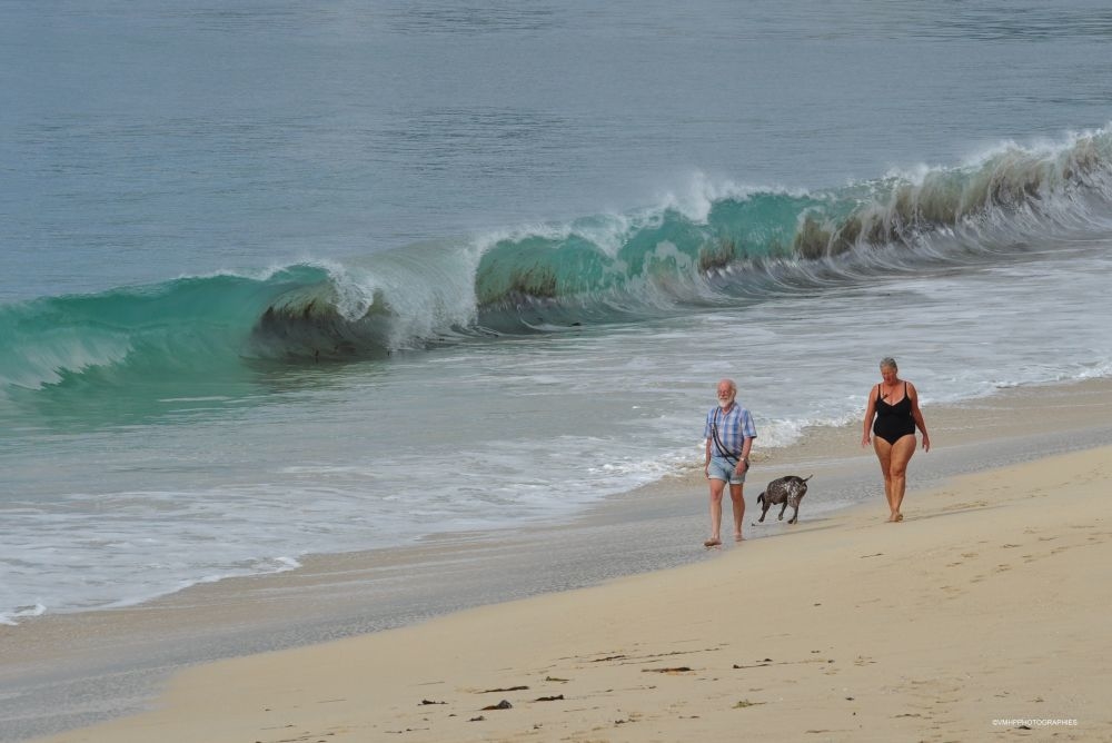 Posté(e) 18 août 20178 a Voici un couple qui se promène tranquillement sur une l'une des plages d'Audierne, dans le Finistère. Visiblement, madame est beaucoup plus prévoyante que Monsieur... et ne se fera pas surprendre par cette belle vague.
