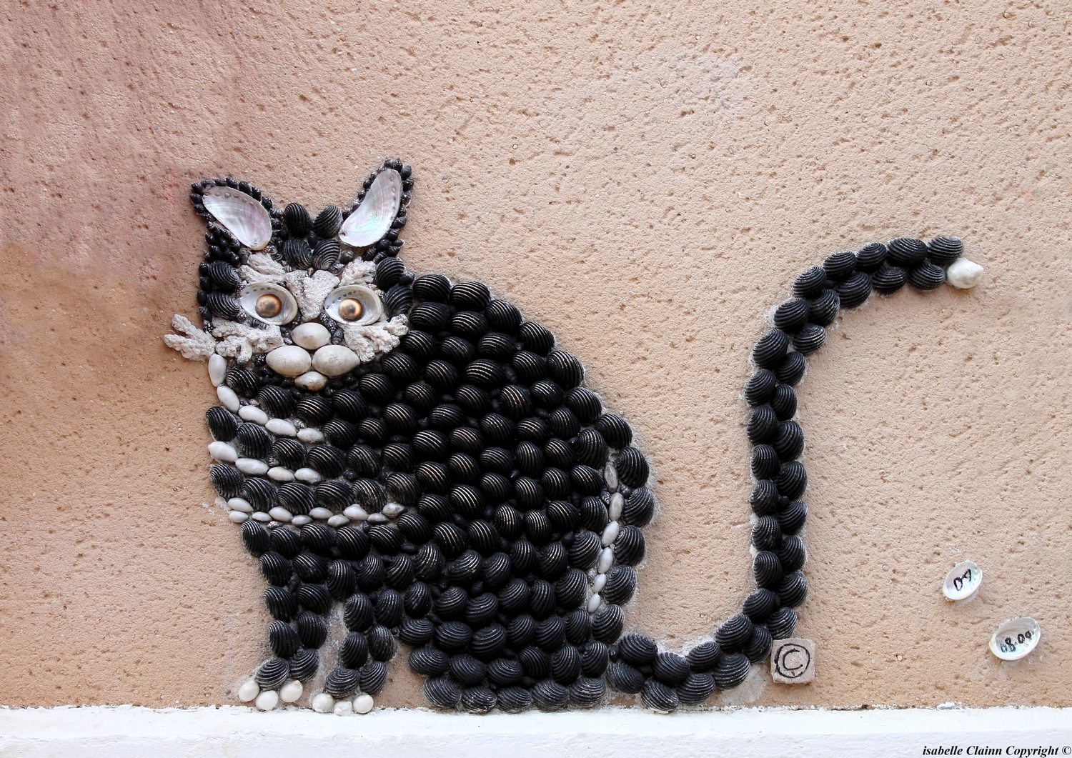 Posté(e) 21 août 20178 a L'île Penotte est un quartier des Sables d' Olonne qui situe entre le port et la plage. En 1997, Danièle, alias " Dan ", s'y est installée et elle a commencé à décorer toutes les ruelles de ses créations en coquillage. Elle va donc au fil des années complètement orner les murs, les boites aux lettres, les poteaux etc... de fresques décoratives superbes. Une très grande artiste et un quartier que je vous conseille vraiment de visiter si vous passez dans cette ville de Vendée. Voici trois chats, réalisés avec des coquillage par cette grande dame.