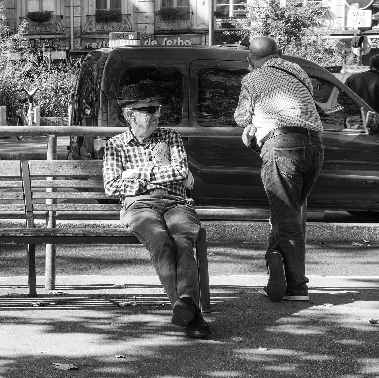Posté(e) 25 septembre 20178 a C'est une bonne suite et c'est bien shooté. Les attitudes de ces deux personnes sont bien captées. je pense que tu pourrais renforcer un peu le noir et blanc. C'est une très bonne photo de rue.