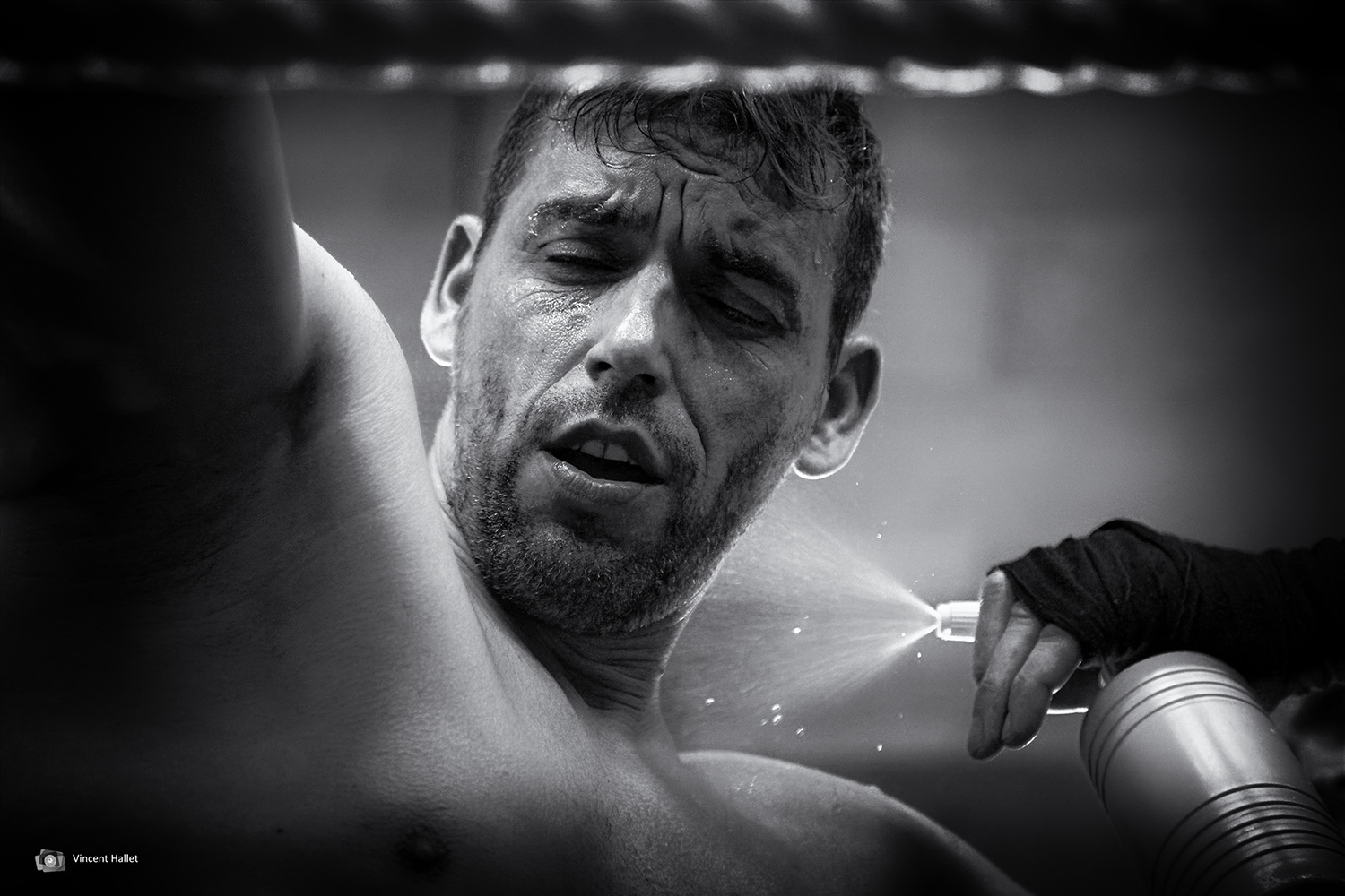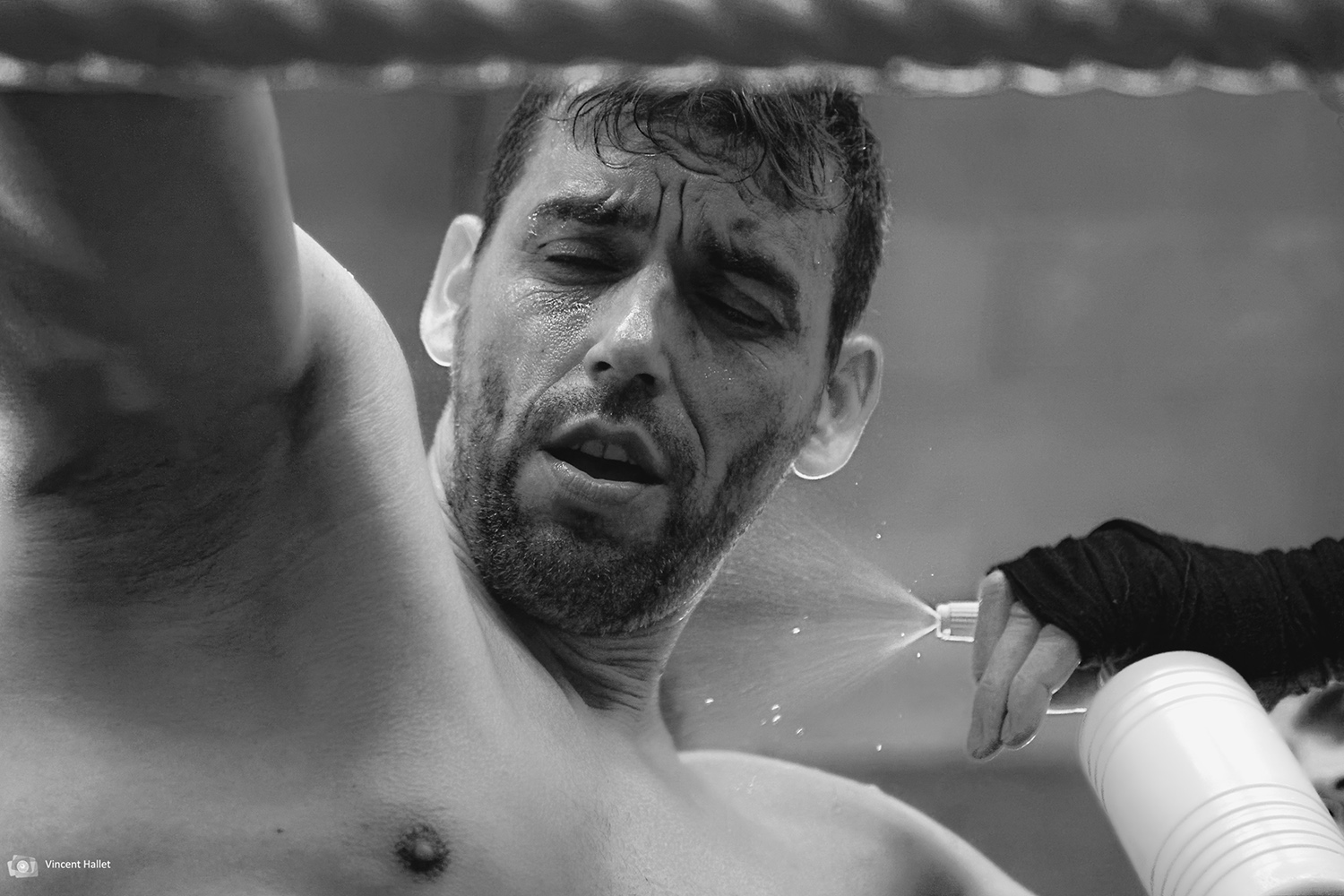 Posté(e) 10 octobre 20178 a C'est un portrait de ce boxeur donc cette photographie est dans la bonne rubrique. L'expression de l'homme est bien captée et le jet d'eau également. Pour ma part, le noir et blanc me convient. Il n'est ni trop doux, ni trop dur en ce qui me concerne.