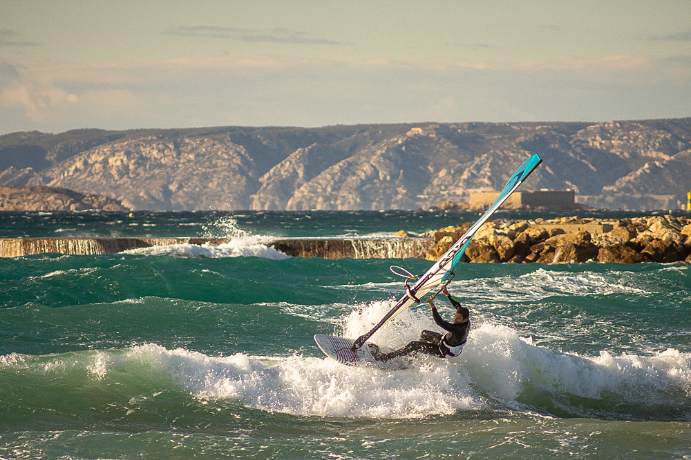 Posté(e) 4 décembre 20178 a Voici un premier essai fait avec ce que j'ai sous la main au boulot ... Logiciel PT Photo Editor 3.8 (Free Edition) Balance des blancs effectuées sur l'écume. Correction de l'exposition. Redressement de l'horizon Réglages tons clairs (+15) et des noirs (-15) => tons clairs plus lumineux et noirs plus foncés Pas d'ajout de contraste Un petit ajout de netteté Traitement local sur le ciel (tons moyen -40, saturation +40) Traitement local sur le visage du véliplanchiste (exposition +20) recadrage au format 16/9 pour placer le visage du véliplanchiste sur un point fort.