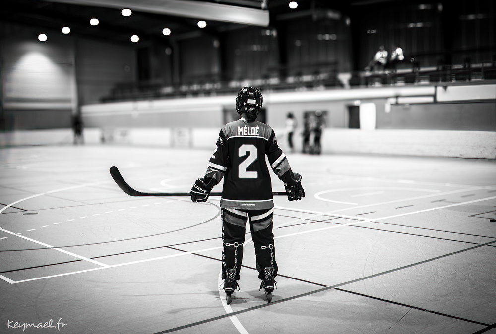 Posté(e) 27 septembre 202527 sept. Un sport assez rarement vu sur le forum, d'autant plus en roller.Le N&B tranché lui va bien et donne un petit air dramatique à la scène... Elle va encaisser un but ? 🥶
