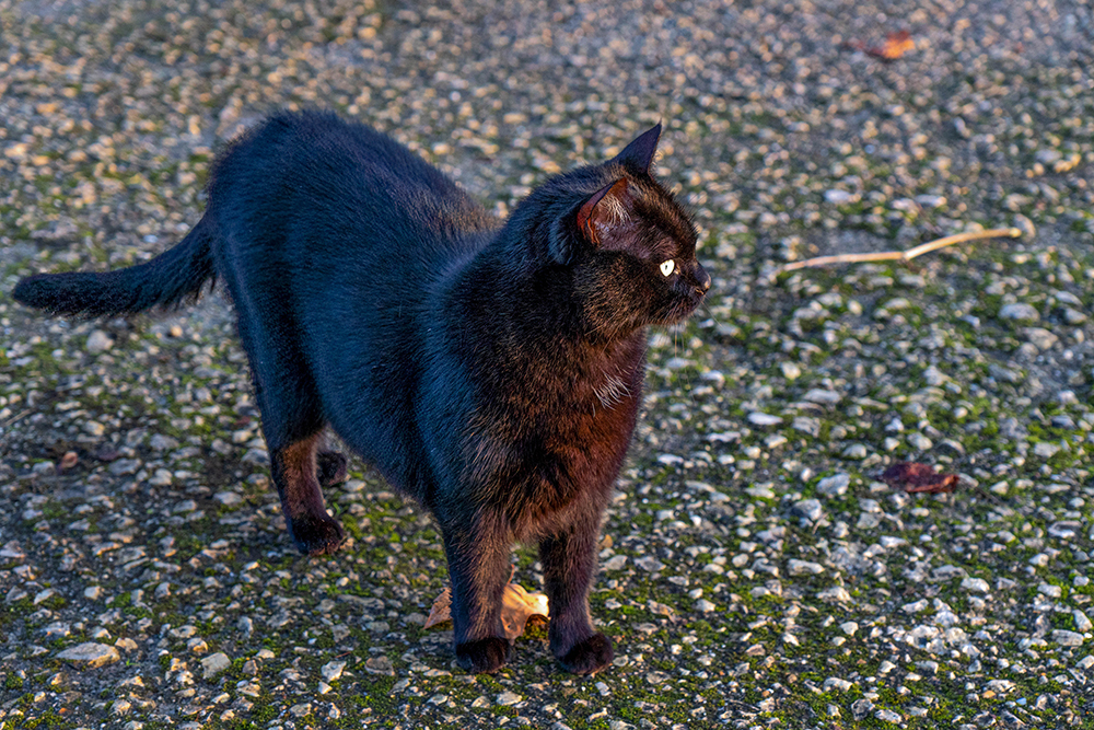 Posté(e) 10 décembre 202510 déc. rencontré lors d'une balade , une panthère aux yeux verts, bien dodueDur de le prendre en photo, tellement il a été démonstratif envers nous !