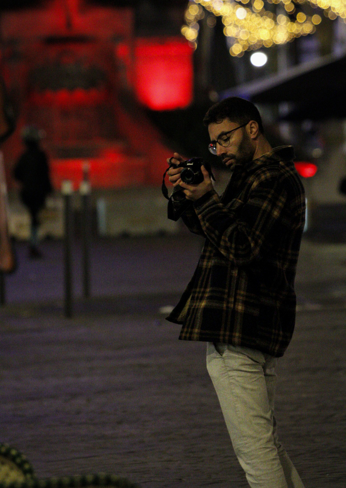 Posté(e) 20 décembre 202520 déc. joli bokeh sur les lumières, le truc en bas à gauche attire l'oeil et aurait mérité un coup de tampon ou un recadrage pour l'enlever, l'image est un peu bruitée on sent les iso elevés, la position du photograhe est sympa et fait un bon sujet je trouve, même si il est un peu sombre