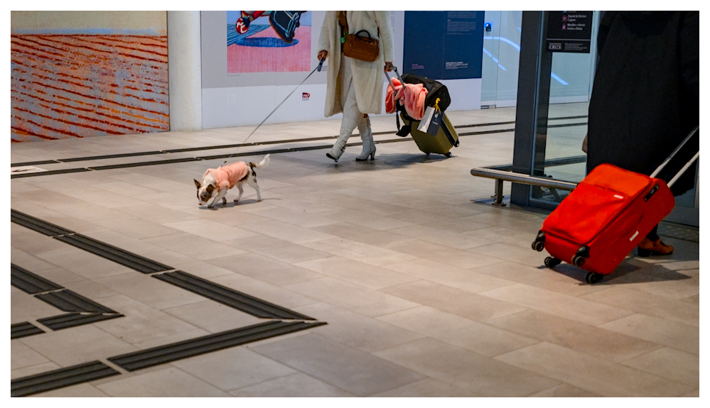 Posté(e) 2 janvier2 janv. Hello Phil,Voila une compo osée qui m'interesse. Un peu dans le style "snap shooting" à la japonaise.L'idée de cadrer sans têtes est bonne, cela fait ressortir le coté anonyme de ces grands échangeurs à voyageurs.Je pense que le cadrage est perfectible en 1- t'approchant pour avoir un sujet plus présent (ce petit chien ?) et ou 2- simplifiant la compo en faisant ressortir les éléments graphique de la scène.Ici on est entre deux eaux, et du coup mon oeil a du mal à rentrer dans l'image. Le tiers inférieur de la photo en dessous du chien et jusqu'à la valise n'apporte pas grand chose à l'histoire.Ma critique est peut-être un peu dure mais je salue cette tentative, c'est très bien d'oser car loin d'être facile et en pratiquant on devient de plus en plus exigeant avec soi-même, une très bonne école ! Je t'encourage à en refaire plein. Modifié 2 janvier2 janv. par Gildepr